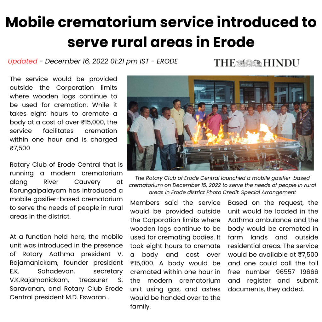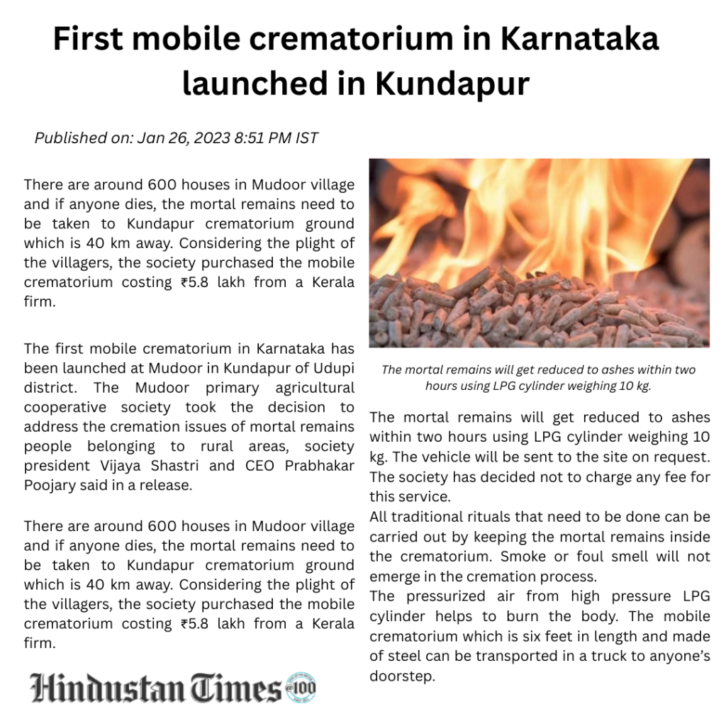 Cremation is an important ceremony that represents dignity, closure, and respect. While the tradition has stayed the same over the years, the methods have not changed much. Traditional wood-based cremation uses a lot of natural resources and harms the environment. Therefore, there is a need for a more responsible and efficient option. Studies worldwide show that traditional practices use large amounts of wood for a single ceremony. This leads to significant deforestation and carbon emissions. As more people become aware of environmental issues, communities and organizations are looking for solutions that honor cultural values while reducing ecological impact. Chitagni is a mobile crematorium that uses LPG. It aims to meet modern cremation needs while saving trees, protecting soil, and conserving water. Chitagni greatly reduces firewood use through controlled LPG combustion. This helps save trees, lowers harmful emissions that degrade soil and air quality, and prevents the unnecessary use of water linked with traditional methods. The result is a cleaner, faster, and more dignified cremation process. It is designed to be adaptable and can be used in remote locations, hilly areas, and other places without permanent cremation facilities, while still respecting traditional rites. Chitagni combines tradition and technology to provide a sustainable cremation solution that meets today’s environmental and social needs.